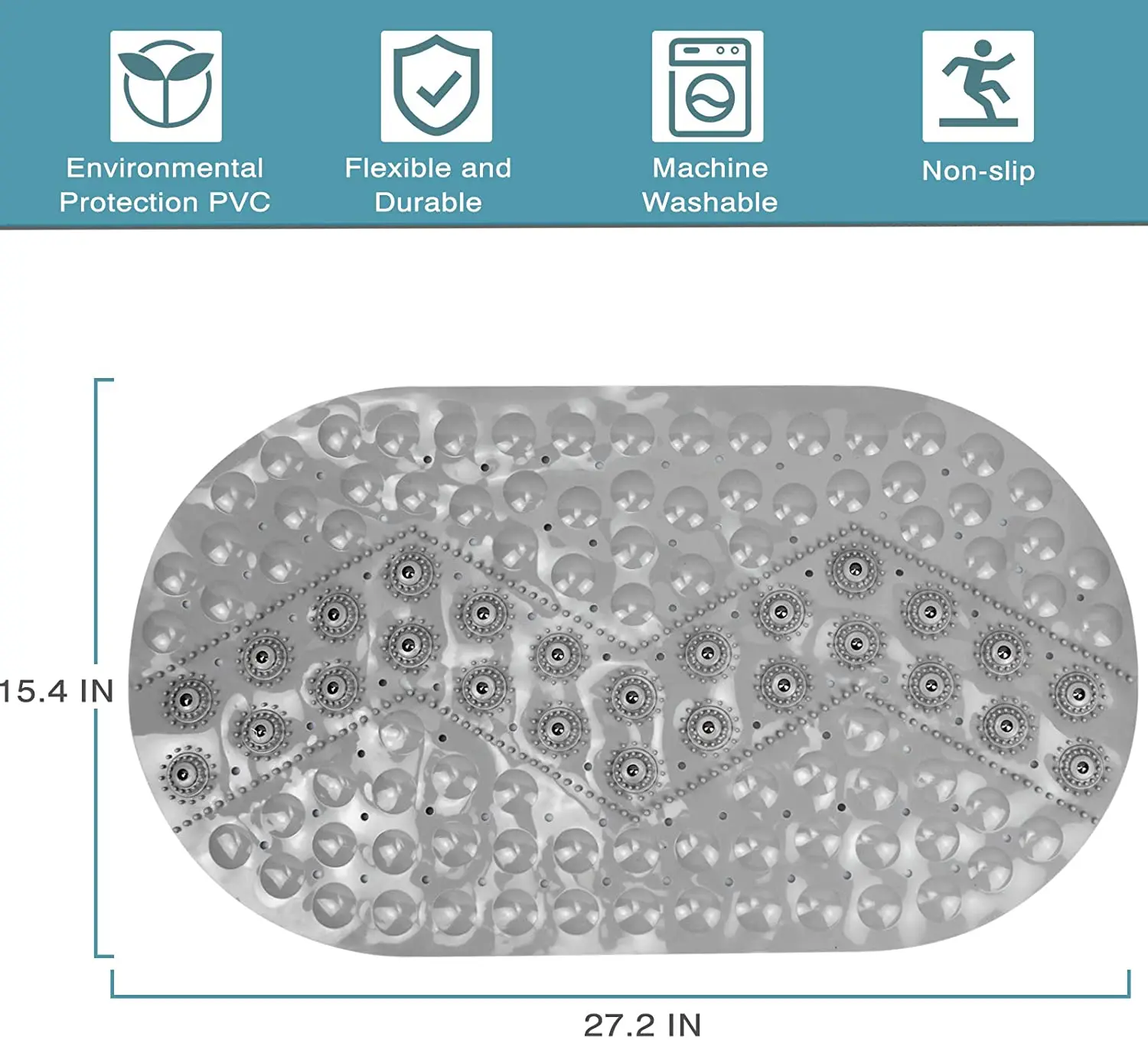 The bath mat is made of Eco-friendly PVC material