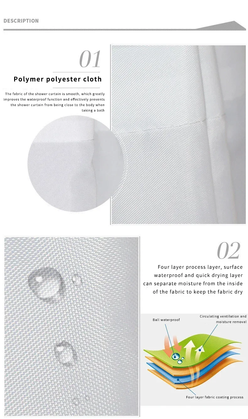 2.Waterproof shower curtain liner for standalone use, or with a shower curtain.