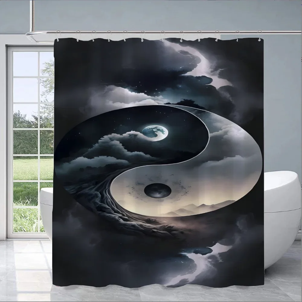 Chinese Taiji Yin Yang Eight Diagrams Shower Curtain for Bathroom Accessories Folding Partition Curtains Bath Bedrooms Quarto@0